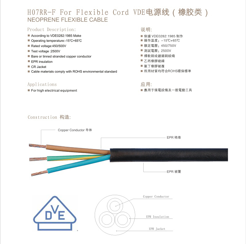 | VDE认证 H07RR-F 橡胶线 |
